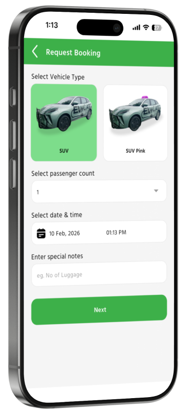 Book your ride in seconds with a smooth and easy process. Get to your destination quickly with reliable electric cabs.!